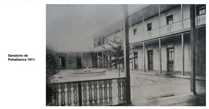 En el año 1904 una sociedad anónima denominada "Sanatorio Peña Blanca" construyó un establecimiento en la localidad de Peñablanca, en un sector rural cercano a la vía del ferrocarril, situado a 29 kilómetros al oriente de Valparaíso.